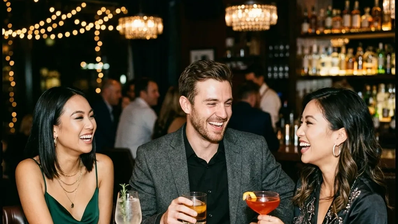 Sides per bar. Square counters. You're always facing someone new. The architecture does the flirting for you.